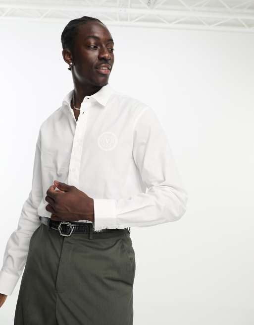 Versace Jeans Couture - Chemise manches longues à logo emblématique caoutchouté - Blanc