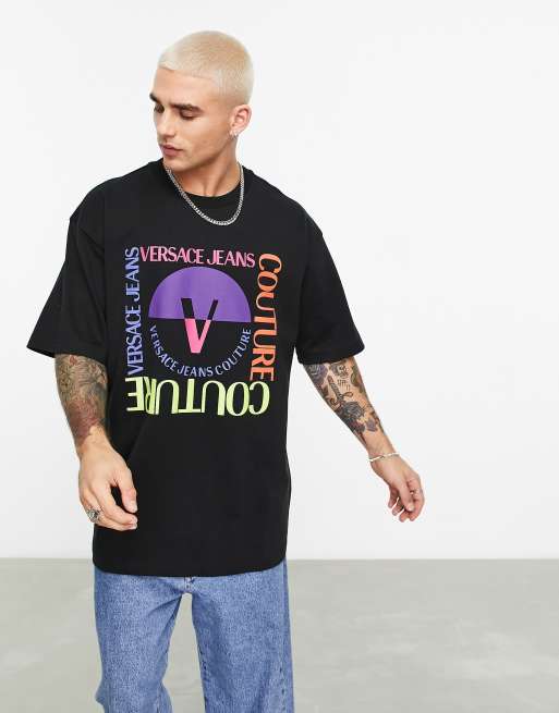 Versace Jeans Couture - T-shirt oversize avec emblème V carré - Noir