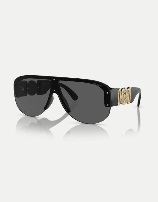 Versace - Lunettes de soleil irrégulières à verres gris - Noir