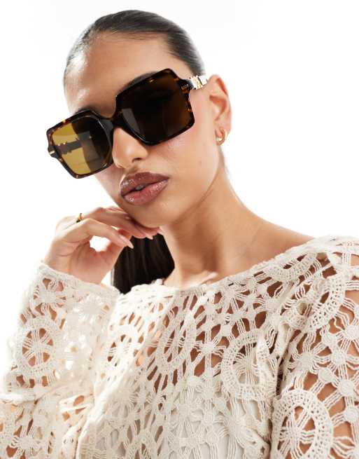 Versace - Lunettes de soleil oversize à monture carrée - Écaille de tortue