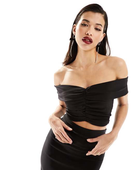 Vesper - Crop top d'ensemble froncé à encolure Bardot - Noir