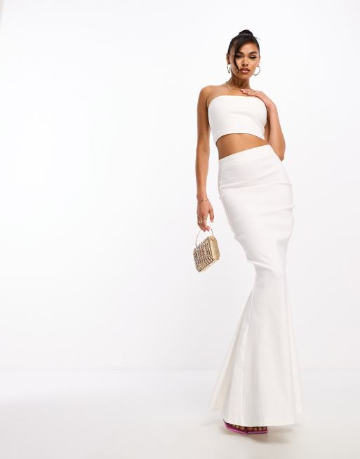 Vesper - Jupe longue d'ensemble en bengaline avec ourlet sirène - Blanc