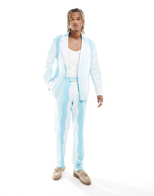 Viggo - Pantalon de costume oversize à imprimé ondulé - Bleu clair