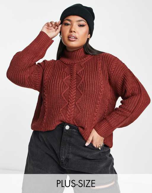 Vila Curve - Pull en maille torsadée à col montant - Rouge