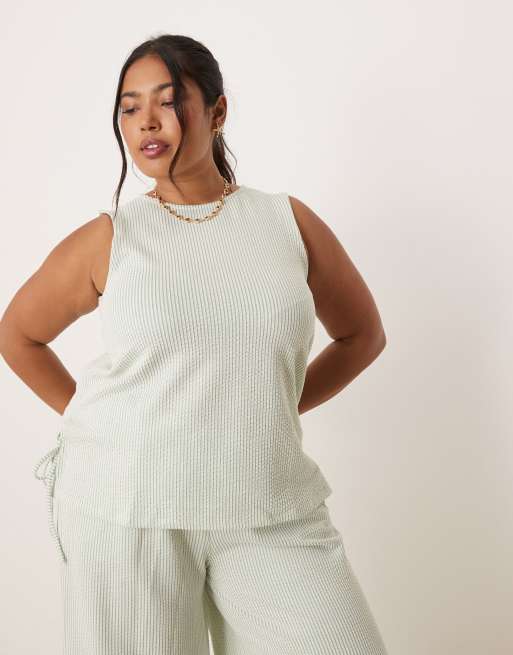 VILA Curve - Top d'ensemble sans manches avec liens noués sur les côtés et rayures texturées - Vert/crème