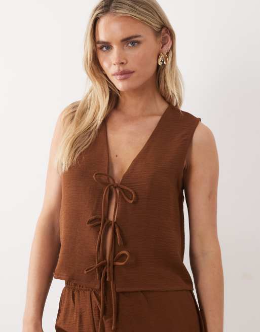 VILA Petite - Débardeur d'ensemble texturé noué à l'avant - Marron carafe
