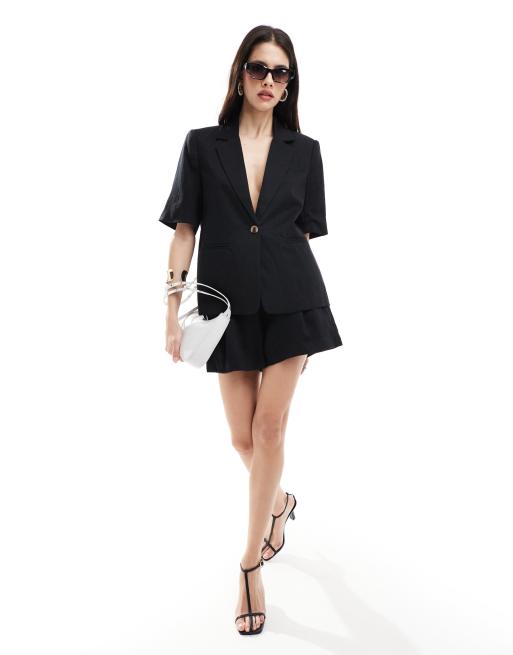 Vila - Blazer d'ensemble aspect lin à manches courtes - Noir