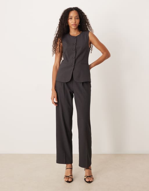 VILA - Ensemble avec gilet de tailleur ajusté et pantalon taille haute - Gris foncé chiné