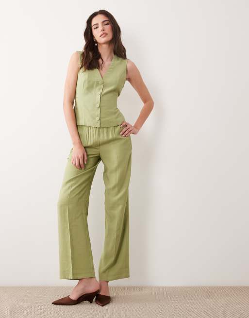 VILA - Ensemble avec gilet de tailleur ajusté noué devant et pantalon taille mi-haute - Vert sauge
