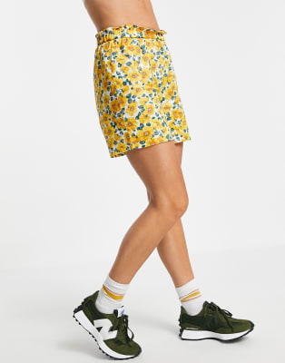 Vila - Ensemble avec short et top encolure carrée à imprimé fleuri - Jaune