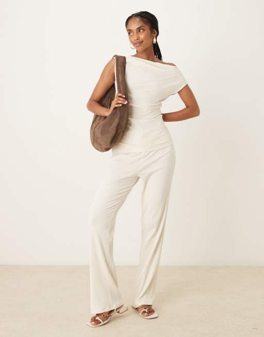 VILA - Ensemble en jersey côtelé avec pantalon et top - Crème