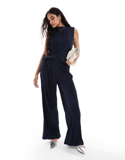 Vila - Ensemble plissé avec pantalon ample et top sans manches - Bleu marine