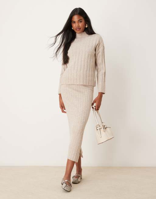VILA - Ensemble pull côtelé et jupe longue - Crème
