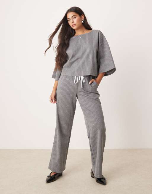 Vila - Ensemble top ajusté coupe carrée et pantalon large en jersey - Gris à fines rayures