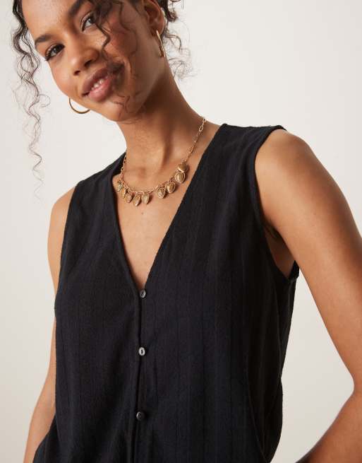 Vila - Gilet de costume d'ensemble en maille côtelée légère - Noir