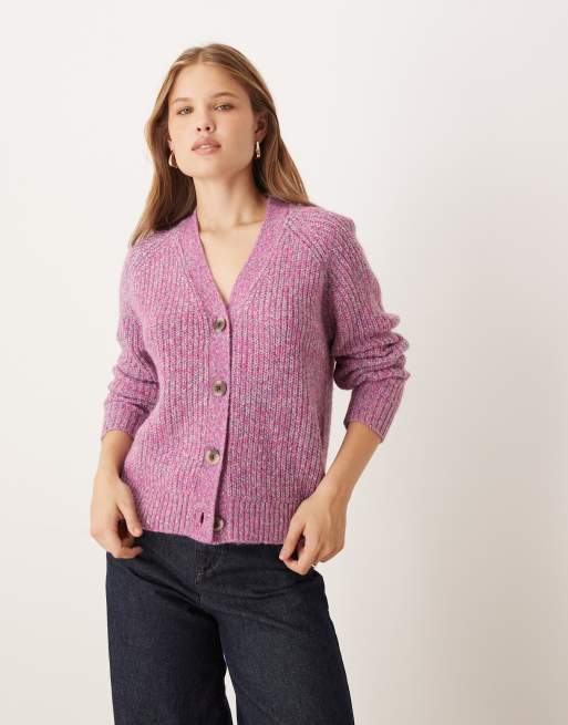 Vila - Gilet en maille côtelée chunky - Rose chiné