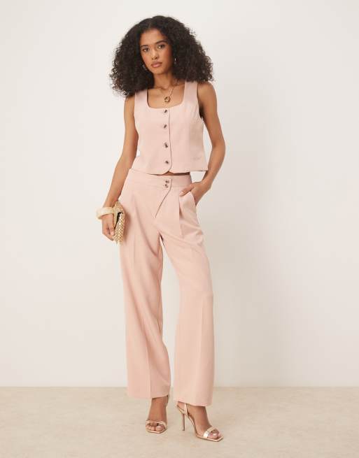VILA - Pantalon d'ensemble ample habillé à pinces - Pêche