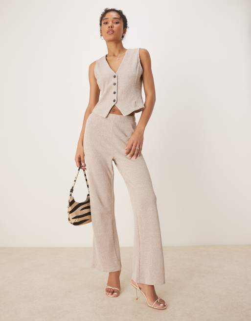 VILA - Pantalon large d'ensemble en jersey texturé - Naturel clair chiné