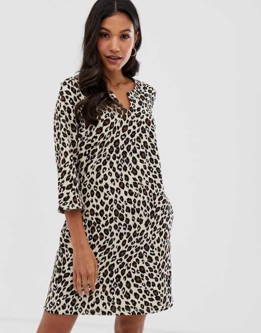 Vila - Robe babydoll à imprimé léopard