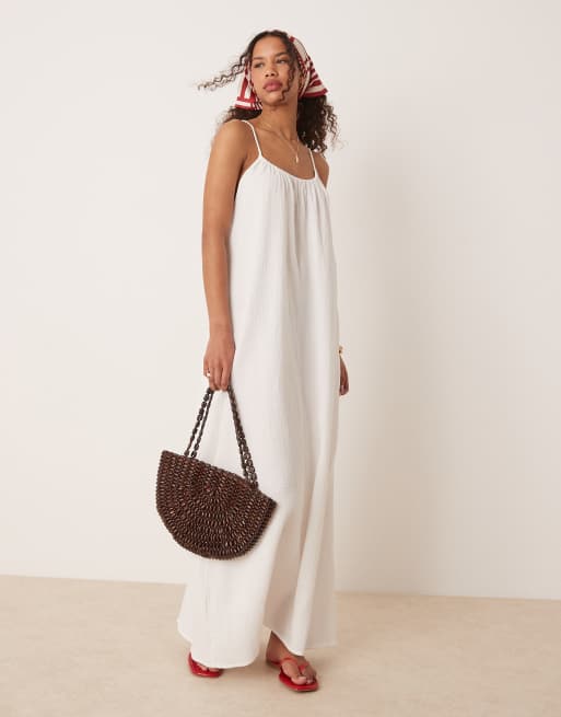Vila - Robe nuisette caraco longue en coton froissé - Blanc