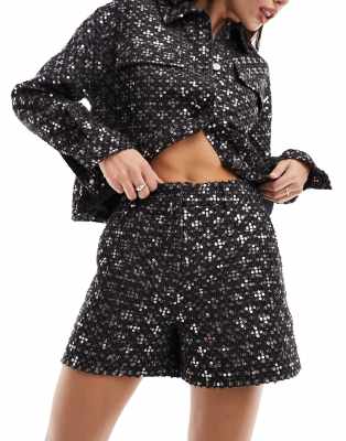 Vila - Short d'ensemble ajusté en maille bouclée à sequins - Noir délavé