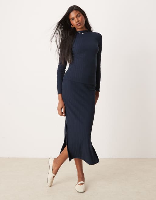 VILA - Top d'ensemble à col cheminée et manches longues - Bleu marine