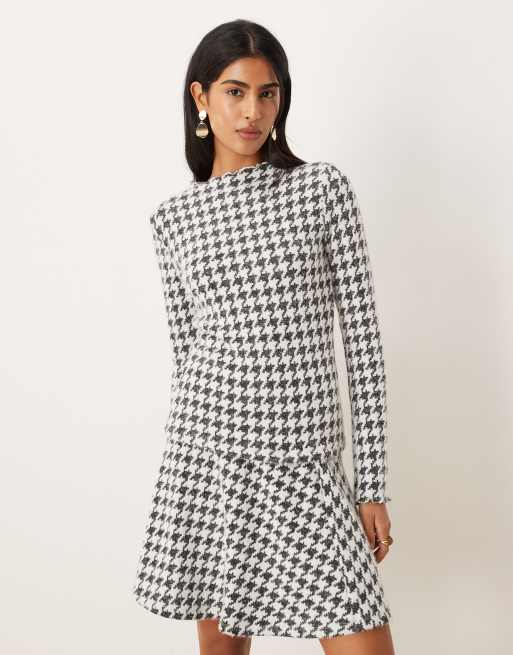 Vila - Top d'ensemble en maille pied-de-poule col montant - Noir et blanc