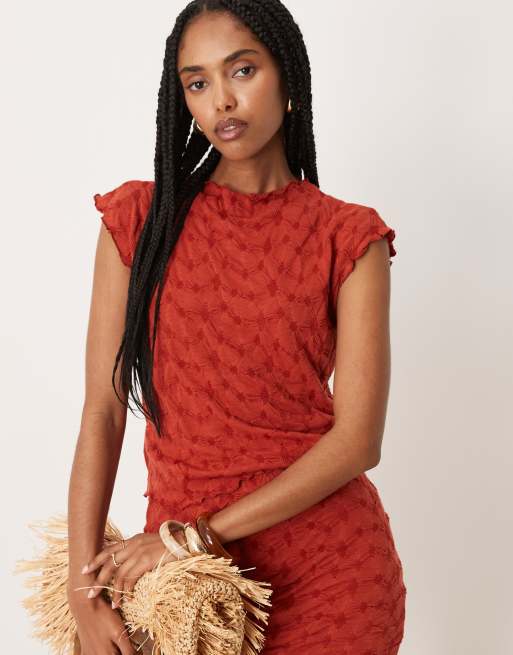VILA - Top texturé à encolure bateau d'ensemble - Rouge profond