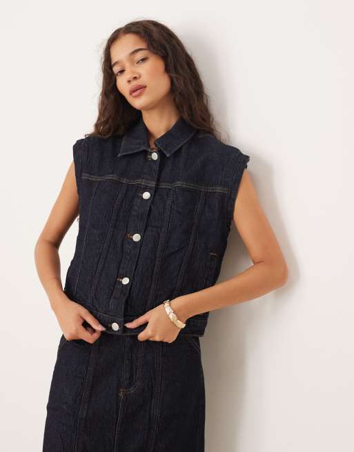 VILA - Veston d'ensemble en denim à coutures apparentes - Bleu indigo foncé
