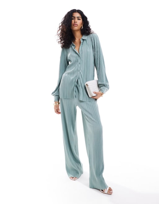 Y.A.S - Ensemble plissé avec chemise et pantalon large - Brise marine