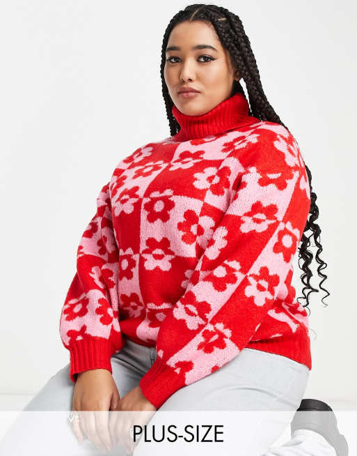 Violet Romance Plus - Pull col roulé oversize à fleurs