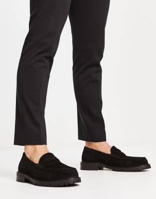 Walk London - Campus - Mocassins en daim à pampilles et semelle chunky - Noir