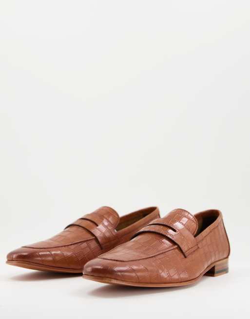 Walk London - Capri Penny - Mocassins en cuir embossé effet croco - Fauve