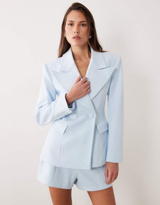 Wanderdoll - Charlotte - Blazer d'ensemble à revers oversize et taille cintrée - Bleu pastel