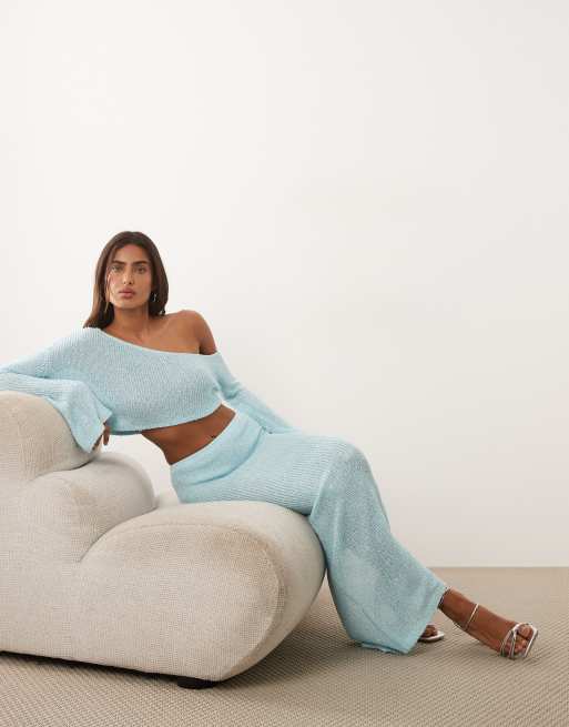 Wanderdoll - Gigi - Jupe de plage longue d'ensemble en maille métallisée - Bleu pastel