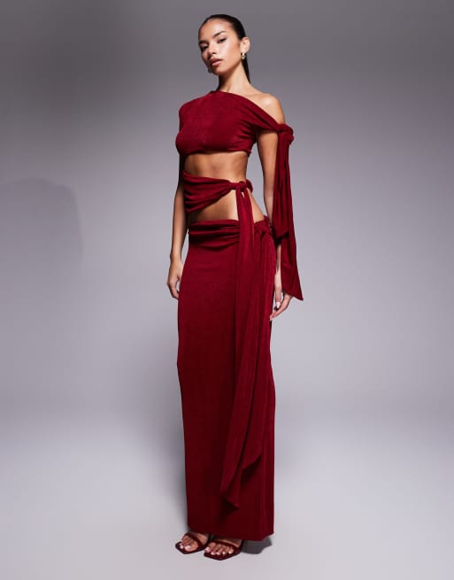 Wanderdoll - Noa - Jupe longue d'ensemble haut de gamme coupe près du corps drapée - Lie-de-vin