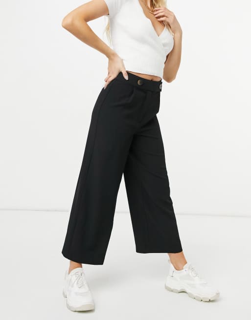 Warehouse - Pantalon large court avec patte boutonnée - Noir