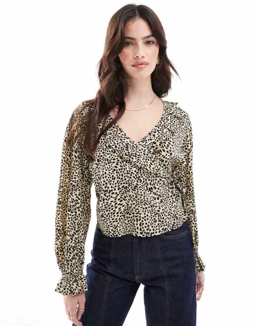 Wednesday's Girl - Blouse cache-cœur à imprimé léopard et volants