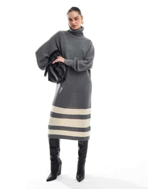 Wednesday's Girl - Robe oversize douce au toucher longueur mollet avec ourlet rayé - Gris anthracite