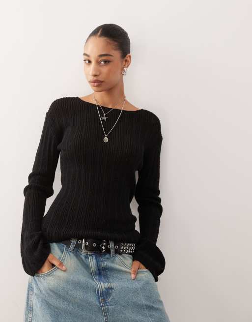 Exclusivité ASOS - Weekday - Pull ajusté en maille semi-transparente - Noir
