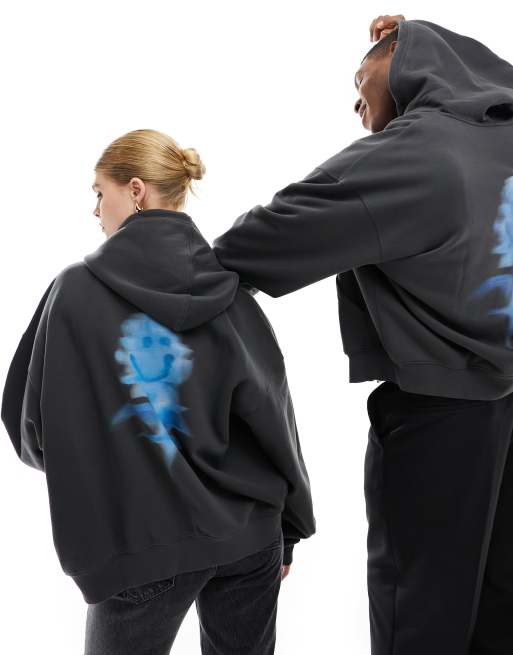 Exclusivité ASOS - Weekday - Sweat à capuche unisexe zippé à imprimé fleur floue - Noir cassé
