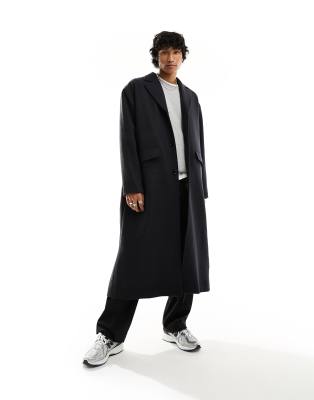 Weekday - Armond - Manteau oversize long en laine mélangée - Gris foncé chiné