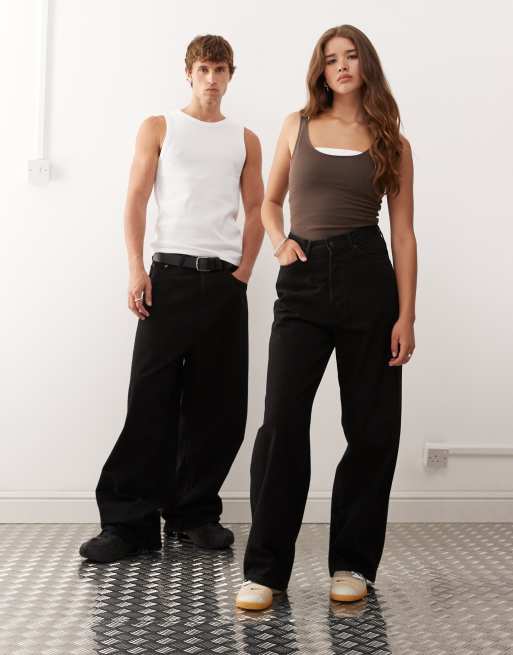 Weekday - Astro - Jean coupe baggy à taille basse - Noir brut délavé