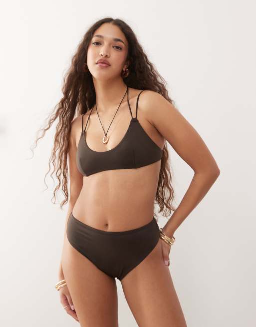 Weekday - Bas de bikini brésilien à taille haute - Marron foncé