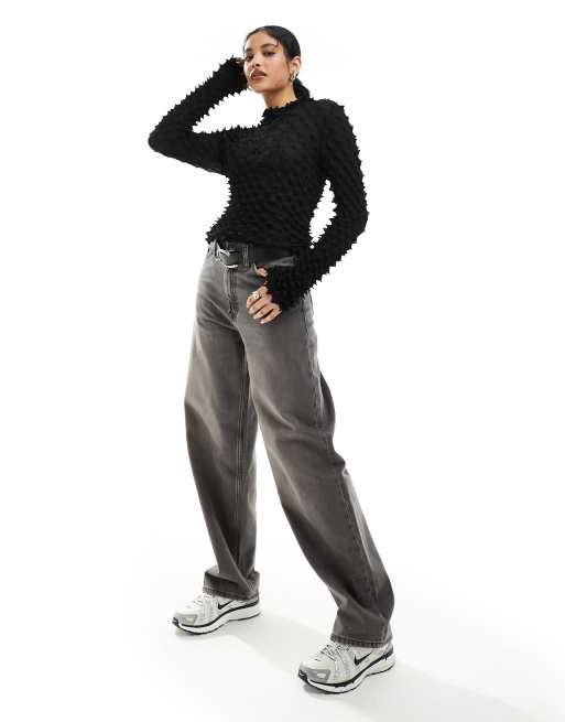Weekday - Chara - Top à capuche et manches longues avec pointes plissées - Noir