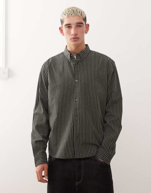Weekday - Chemise oversize rayée à manches longues - Gris et noir