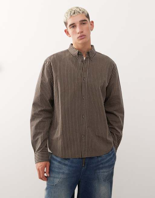 Weekday - Chemise oversize rayée à manches longues - Marron