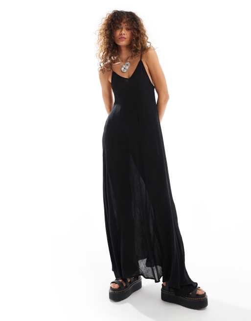 Weekday - Cyndra - Robe longue en crêpe à fines bretelles - Noir