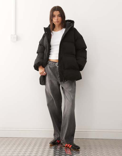 Weekday - Doudoune cintrée avec capuche amovible - Noir