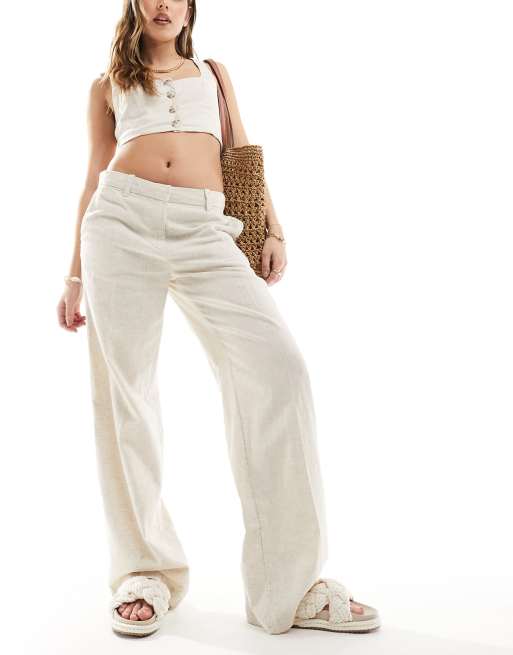 Weekday - Emmie - Pantalon taille basse en lin mélangé - Beige